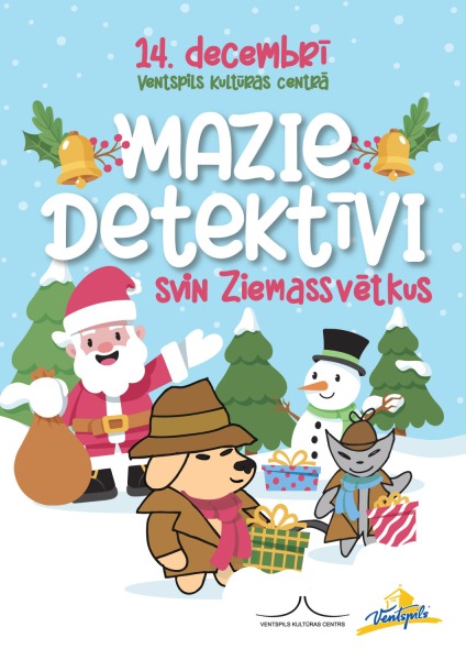 Ventspils Kultūras centrs aicina ģimenes uz īpašu Ziemassvētku piedzīvojumu “Mazie detektīvi svin Ziemassvētkus”, kas notiks 14. decembrī Ventspils Kultūras centrā.