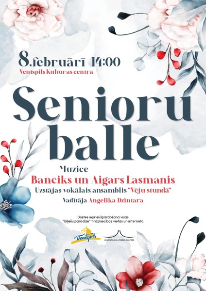 Ziemas dienās, kad aiz loga klusi krīt sniegs un vakari kļūst garāki, īpaši svarīgi ir atrast brīžus sirsnīgam satikšanās priekam. 8. februārī plkst. 14.00 Ventspils Kultūras centrā notiks Senioru balle, uz kuru aicināti visi, kam tuva mūzika, deja un patīkama kopā būšana.