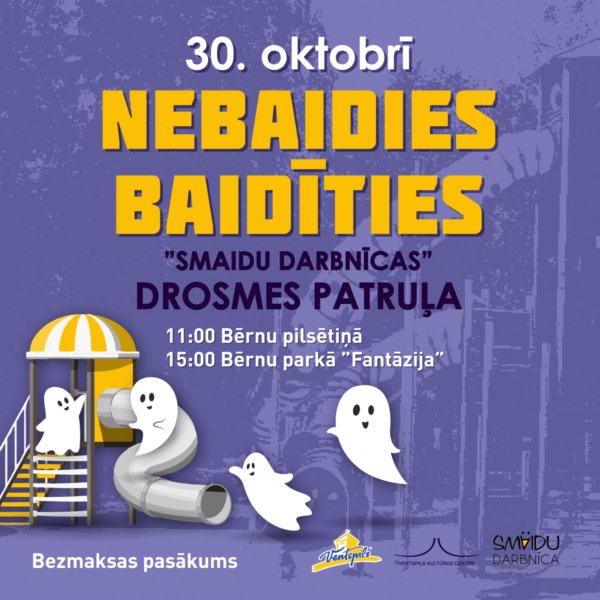Svētdien, 30. oktobrī plkst. 11.00 Bērnu pilsētiņā un plkst. 15.00 bērnu parkā “Fantāzija” norisināsies aktīvs, izklaidējošs pasākums ģimenēm ar bērniem “Nebaidies baidīties”.
