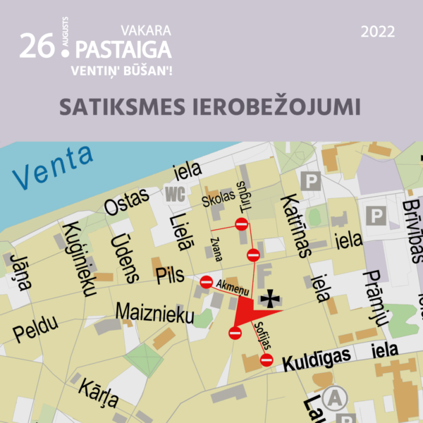 Informējam, ka 26. augustā Piektdienas vakara pastaigas “Ventiņ’ būšan’!” ietvaros no plkst. 16.00 līdz 23.00 tiks slēgta satiksme sekojošās vietās: