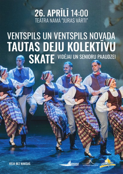 26. aprīlī plkst. 14.00 teātra namā “Jūras vārti” notiks Ventspils Kultūras centra un Ventspils novada tautas deju kolektīvu skate. Skatē piedalīsies vairāki deju kolektīvi, kuri ar savu sniegumu priecēs skatītājus un demonstrēs deju prasmes.