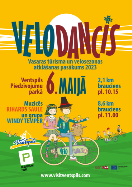 Sestdien, 6. maijā plkst. 11.00 Piedzīvojumu parkā jau tradicionāli ar krāšņu velobraucienu tiks atklāta Ventspils vasaras tūrisma un velo sezona. Latvijā šīs gads tiek aizvadīts Vispārējo latviešu Dziesmu un Deju svētku zīmē, tāpēc velobraucienam izvēlēts atbilstošs moto ”Velodancis”.