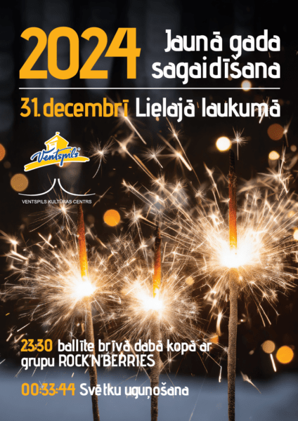 31. decembrī plkst. 23.30 Lielajā laukumā ventspilnieki un pilsētas viesi aicināti kopā sagaidīt jauno 2024. gadu. Ar pasaulē zināmu dziesmu programmu kārtīgu ballīti iegriezīs mūzikas grupa “Rock’n’Berries”. Krāšņa svētku uguņošana notiks tradicionāli pēc Ventspils laika – plkst. 00:33:44.