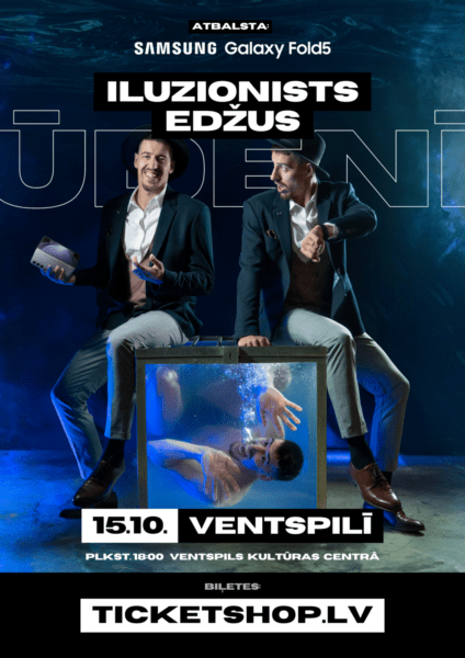 Ilūziju šovs “Iluzionists Edžus ūdenī” pārsteigs ikvienu ar Baltijas valstīs neredzētiem trikiem. Unikāli priekšnesumi – izbēgšana no ūdens kastes, stand-up komēdija, roku veiklības triki, hipnoze, asprātīgas psiholoģiskas spēles ar skatītājiem un daudz citu brīnumainu notikumu. Ar pārsteigumu, spriedzes un humora piepildīto šovu, Iluzionists Edžus priecēs skatītājus vairākās Latvijas pilsētās – Ventspils Kultūras centrā 15.oktobrī plkst.18.00.