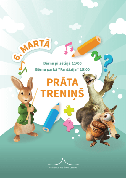 Svētdien, 6. martā plkst. 11.00 bērnu pilsētiņā un plkst. 15.00 bērnu parkā “Fantāzija” bērni un vecāki aicināti apmeklēt jautru un izglītojošu pasākumu “Prāta treniņš”.