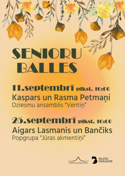 Rudens sezonu uzsākot, 11. un 25. septembra datumos plkst. 16.00 Ventspils Kultūras centrs seniorus aicina uz ballēm, piedāvājot lieliski pavadīt laiku un izdejoties dzīvās mūzikas pavadījumā.