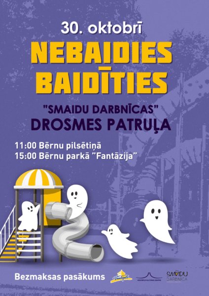 Svētdien, 30. oktobrī plkst. 11.00 Bērnu pilsētiņā un plkst. 15.00 bērnu parkā “Fantāzija” norisināsies aktīvs, izklaidējošs pasākums ģimenēm ar bērniem “Nebaidies baidīties”.