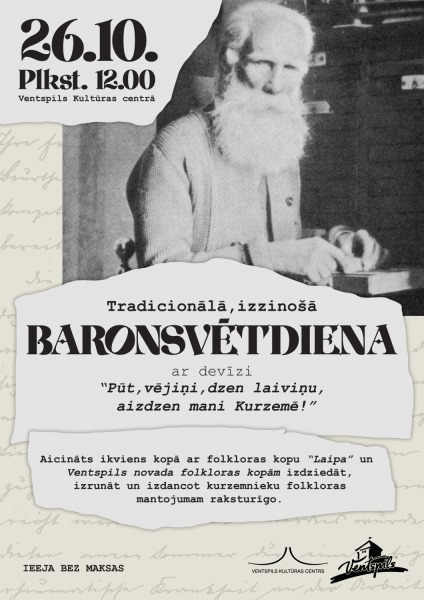 Aicināti visi interesenti, lai kopā ar folkloras kopām no Ventspils pilsētas un novada izdziedātu, izrunātu un izdancotu kurzemnieku folkloras mantojumam raksturīgo. Ieeja bez maksas.