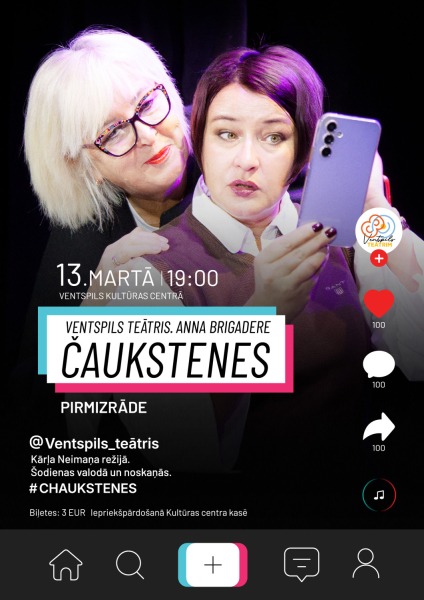 Ventspils Teātris aicina skatītājus uz Annas Brigaderes lugas “Čaukstenes” pirmizrādi, kas notiks 13. martā plkst. 19.00 Ventspils Kultūras centrā. Izrāde top režisora Kārļa Neimaņa vadībā, piedāvājot klasisko darbu drosmīgā, laikmetīgā interpretācijā.