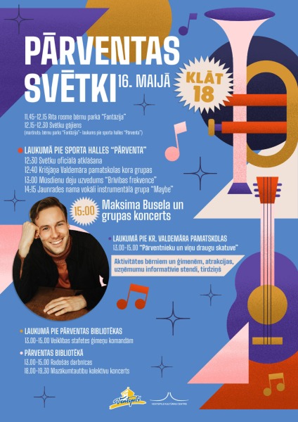 12.15-12.30 Pārventas svētku gājiens (maršruts: b/p “Fantāzija” – stāvlaukums pie sporta halles “Pārventa” pa Talsu ielu).